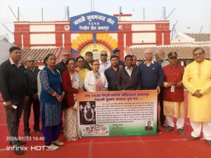 जबलपुर ,नेताजी सुभाष के आज दिनांक 23 ज १२० वे जन्म जयंती के पराक्रम दिवसे के अवसर पर बंग समाज जबलपुर के केन्द्रीय कारागार (सुभाष लार्ड) जबलपुर में त्रिपुरा कांग्रेस 1939 के अवसर पर ५२ हाथियों के जुलूस से संबंधित वृतांत को जनमानस के जानकारी के लिए चिन समर्पित आज सायं. ५ बजे जेल अधीक्षक को किया। जो कि दैनिक भास्कर से साभार था। आज के उनत कार्यक्रम में समाज के अध्यक्ष आलोक बोस, उत्तम उत्तम सरकार सरकार? सरापचेरी, मुक्ता राय, साधन दस सीमा मंडल, अंजन चटर्जी, चाल / त्रिदिय थे। शंभु एवंमालविका भट्टाचार्या, आयोन देब, एवं सुभेदार मेजर एम एल. हाजरा, मयक दीपक पाल, उपस्थित थे। सैनीभी उपस्थित थे,